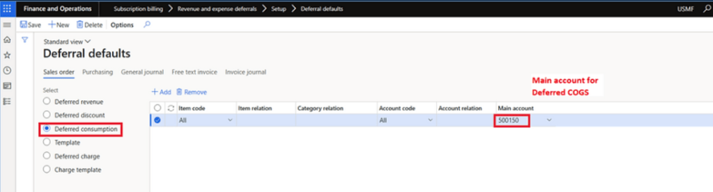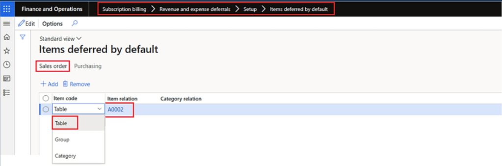 Here I’m using Table to specify a single Item. We are defining this for sales order process. If we want to create deferral for purchasing, we can map the items in purchasing tab as well