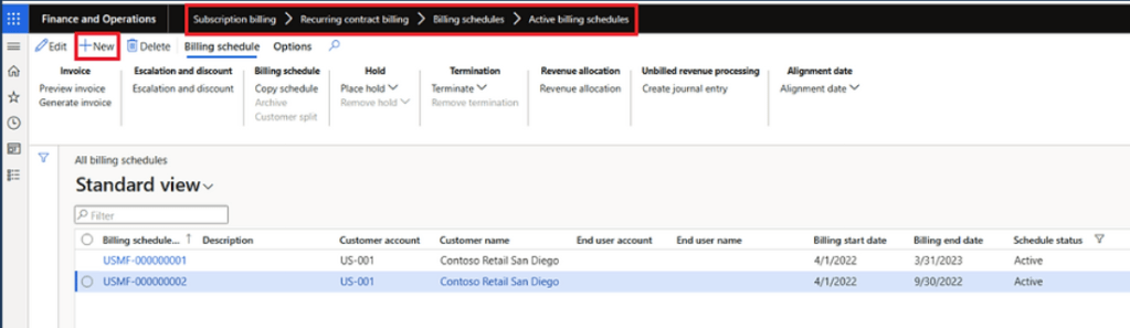 Once setup has been done, now we need to create the billing schedule
