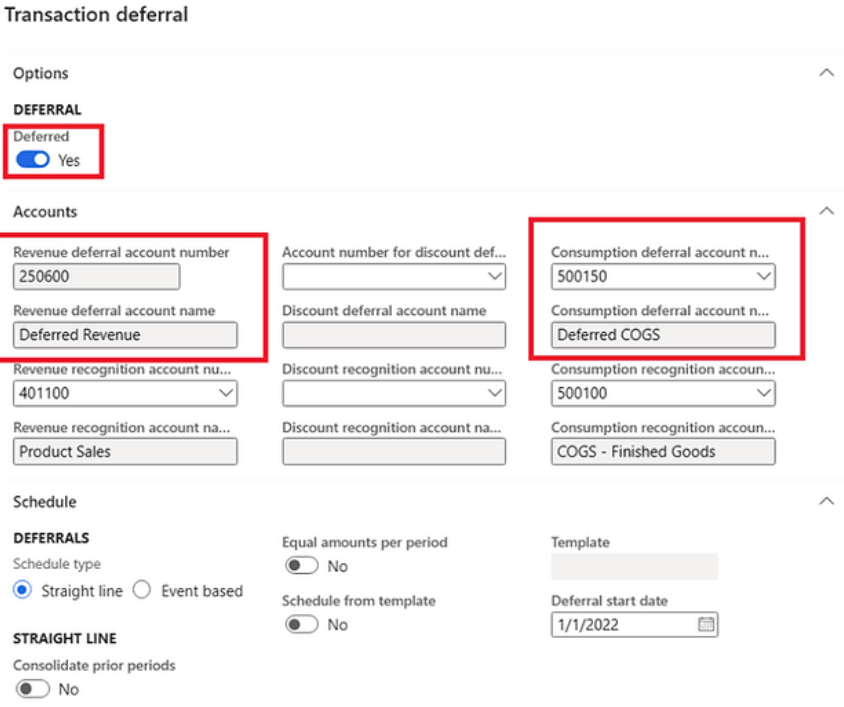 a pop-up window will open. here deferred check is enabled for the item, and we can also see the main accounts involved in the process which we set in posting setup