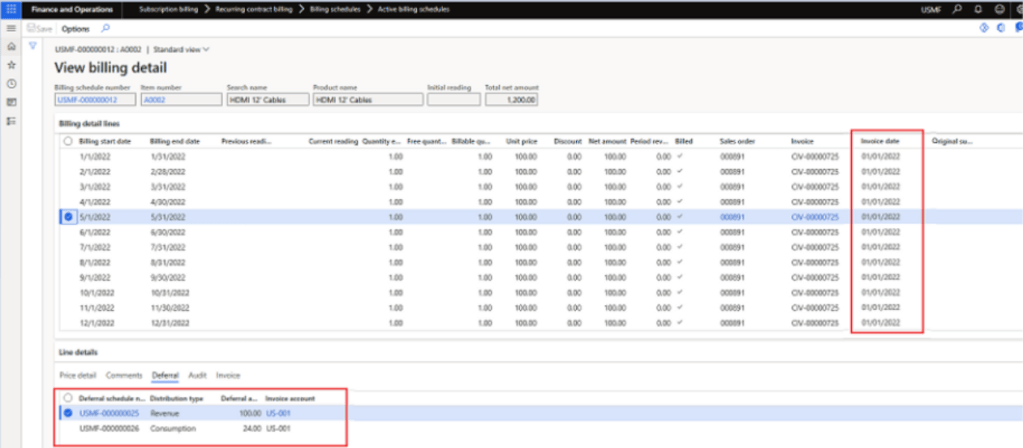 System has created a sales order and associated multiple lines with it. on the deferral tab, we can see that it created deferral entries for revenue as well as consumption