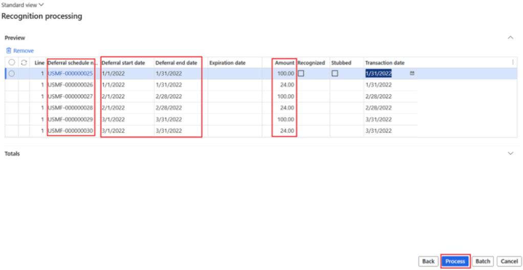 by this process, system pick all the relevant deferral schedule. Click on process and system will post the voucher to transfer deferred revenue to revenue and change the status of deferral schedule status to completed