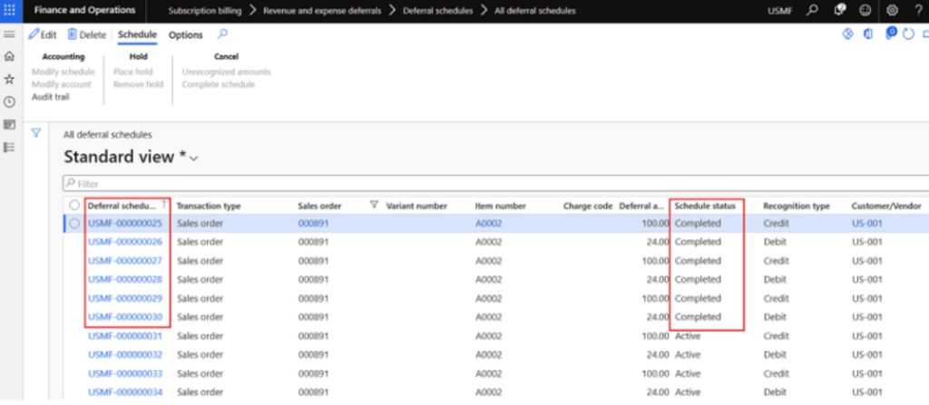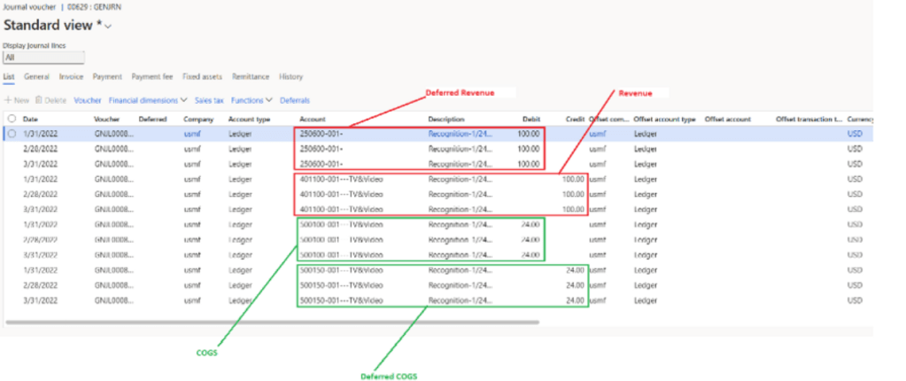 there are total 24 rows, 12 for deferred revenue and 12 for deferred cogs. Click on any one of deferral schedule