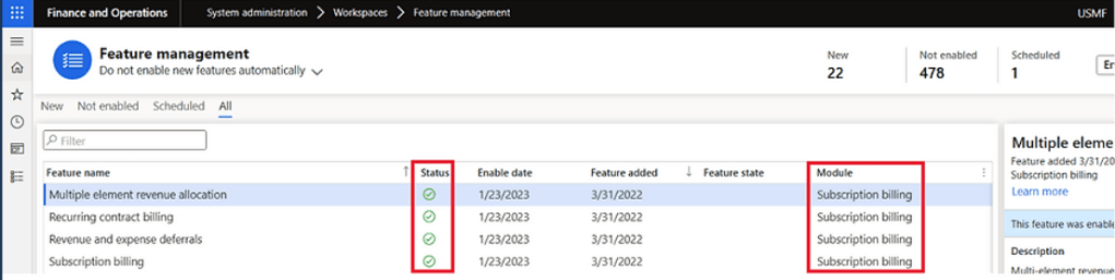 Firstly, you need to enable subscription billing solution through Feature management. However, it can’t be used with the Revenue recognition feature. Therefore, you must disable that feature before you enable subscription billing.