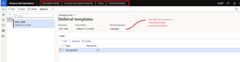 First of all we need to create a deferral template which will help the system to identify the frequency of deferral schedule and number of period for which expense needs to be deferred