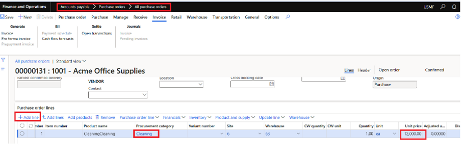 Once all the setup has been created, now I’ll create a PO using my procurement category