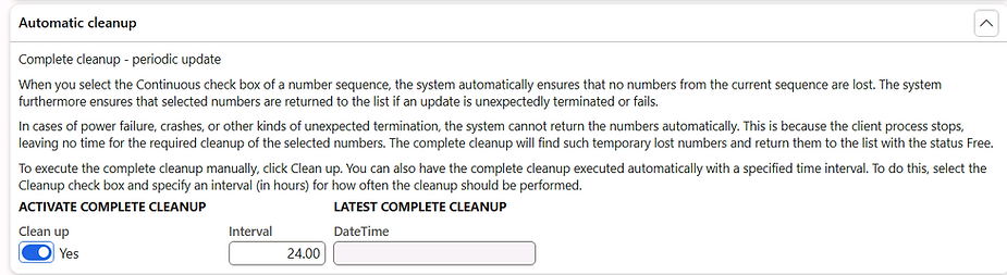 Automatic clean up help us in maintaining our continuous number sequence, so if anything goes wrong with number sequence or it goes missing, system will automatically make it available to the available number list. Alternatively we can run manual clean up through organisation administration module but that’s a discussion for different time,