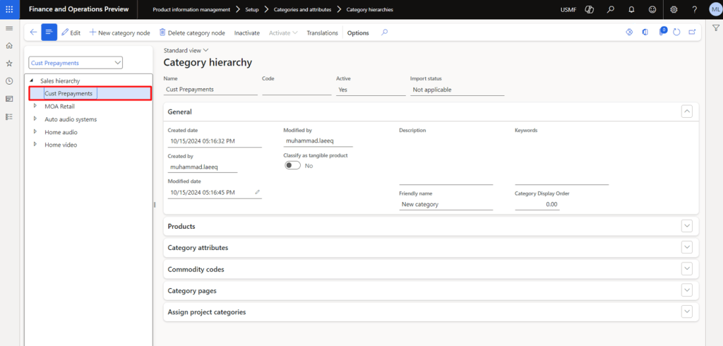 Setup up the Sales Category that will be selected at the time of prepayment proposal. We can also create multiple Sales Categories and assign different main accounts with each category (if required). In our case it will be “Cust Prepayments”