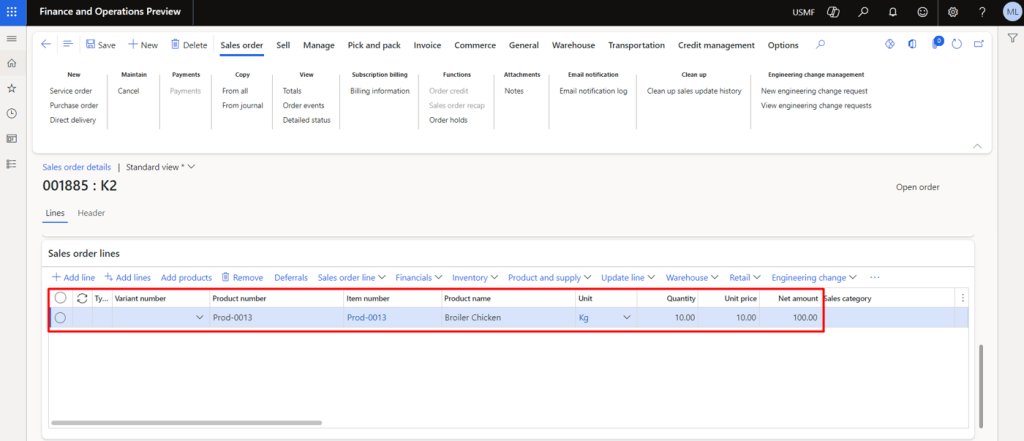 Sales Order Net Amount = 100
