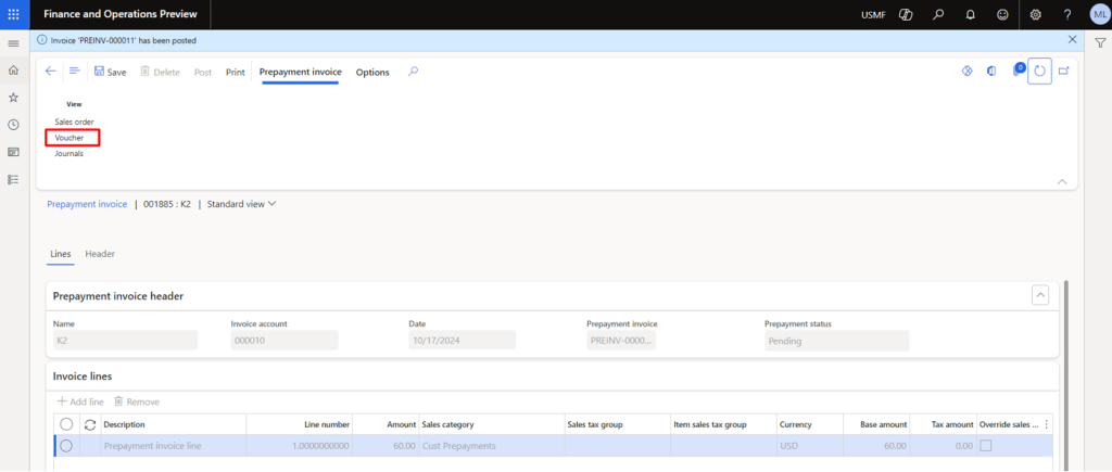 Now click on the Prepayment Invoice button