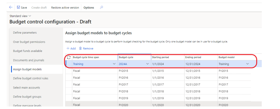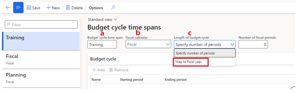 - Budget cycle timespan I’ll select the Training which I created in Budget cycle
