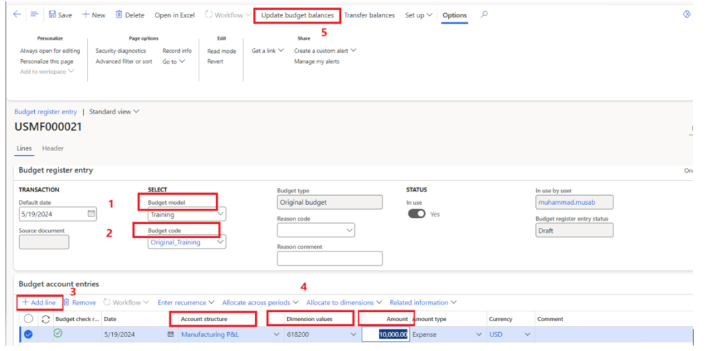 After all the setup and configuration is complete, We now feed D365 with budget. For that we will create the budget register entries.