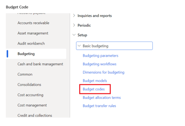 Budgeting > Setup >Basic Budgeting > Budget Codes