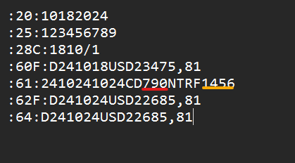 I’ve a MT940 file which show only one transaction of 790 USD and it have a reference number 1456