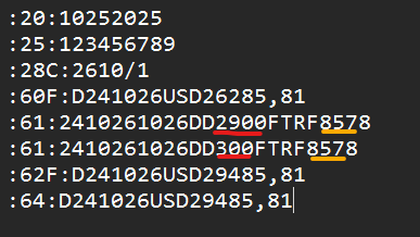 I’ve a MT940 file which show two transactions of 2,900 USD and 300 USD and it have a reference number 8578.