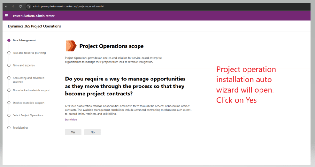 First you need to get Project operations free trial for that Click Here
