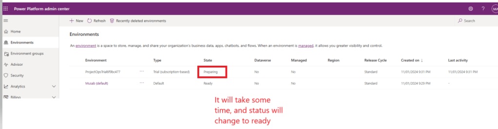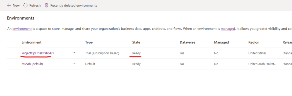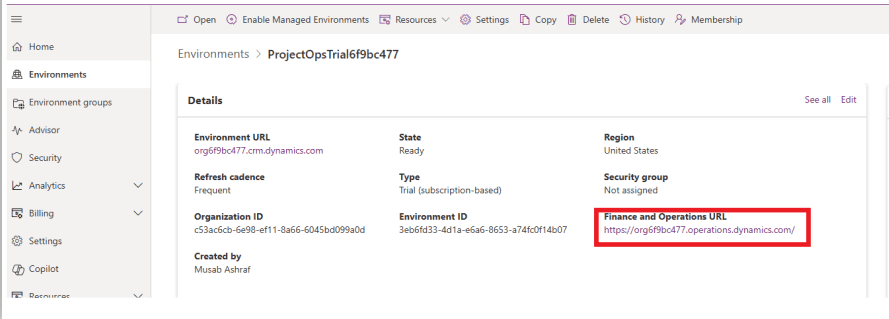 Now click on ProjectOps enviroment