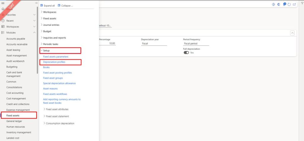Navigate to Fixed Assets > Setup > Depreciation Profiles