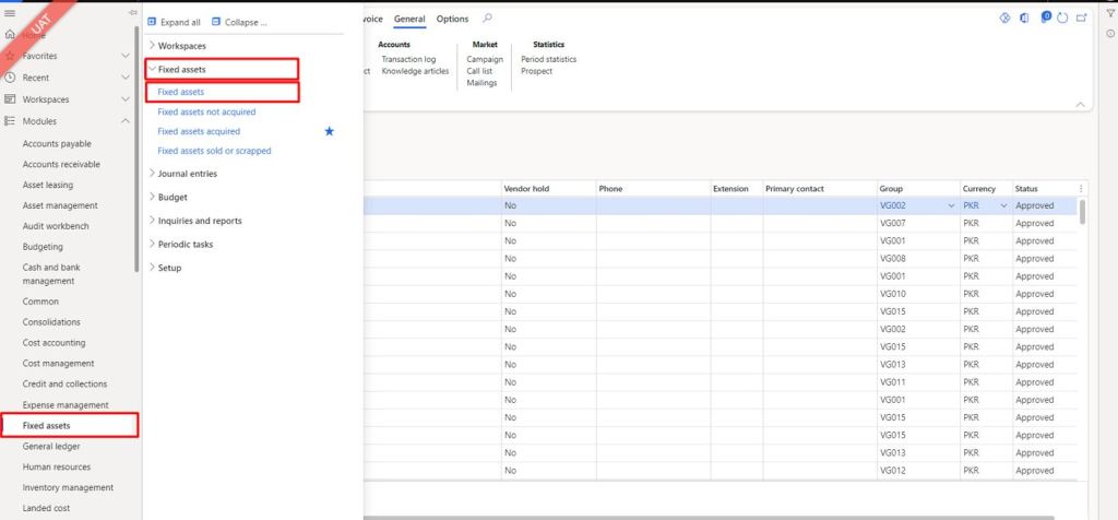 Navigate to Fixed Assets > Fixed Assets > Fixed Assets