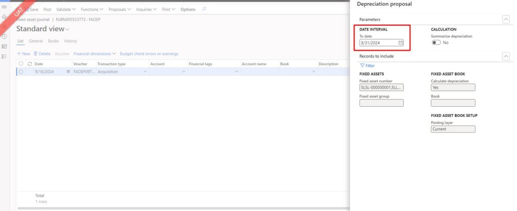 Run depreciation proposal for the month of August (31-Aug-2024) to check the depreciation calculation
