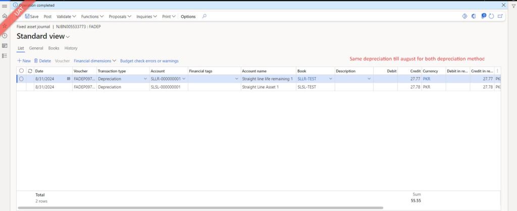 You will notice the same calculated depreciation amount for both the depreciation methods.
